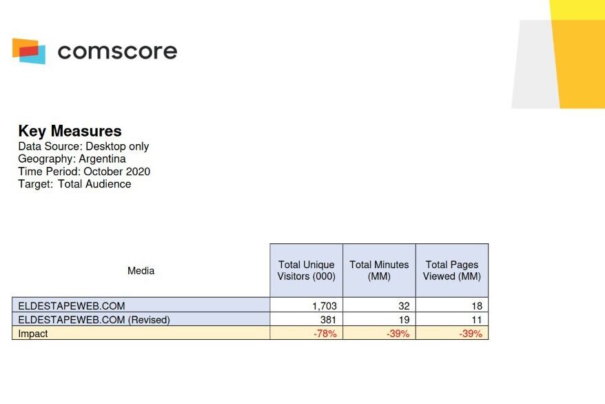 El portal de noticias El Destape Web hizo crecer desmesuradamente sus números de tráfico durante el pasado mes de octubre, de acuerdo con un informe de la empresa Comscore, que se dedica a l