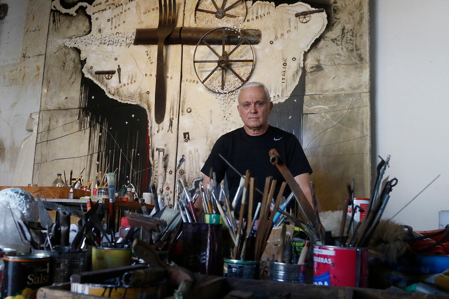 Tiene su espacio en el barrio de Flores en una propiedad donde vivieron Perón y sus padres. Y se resiste al microcentro cultural de Palermo. Su obra como hecho político.