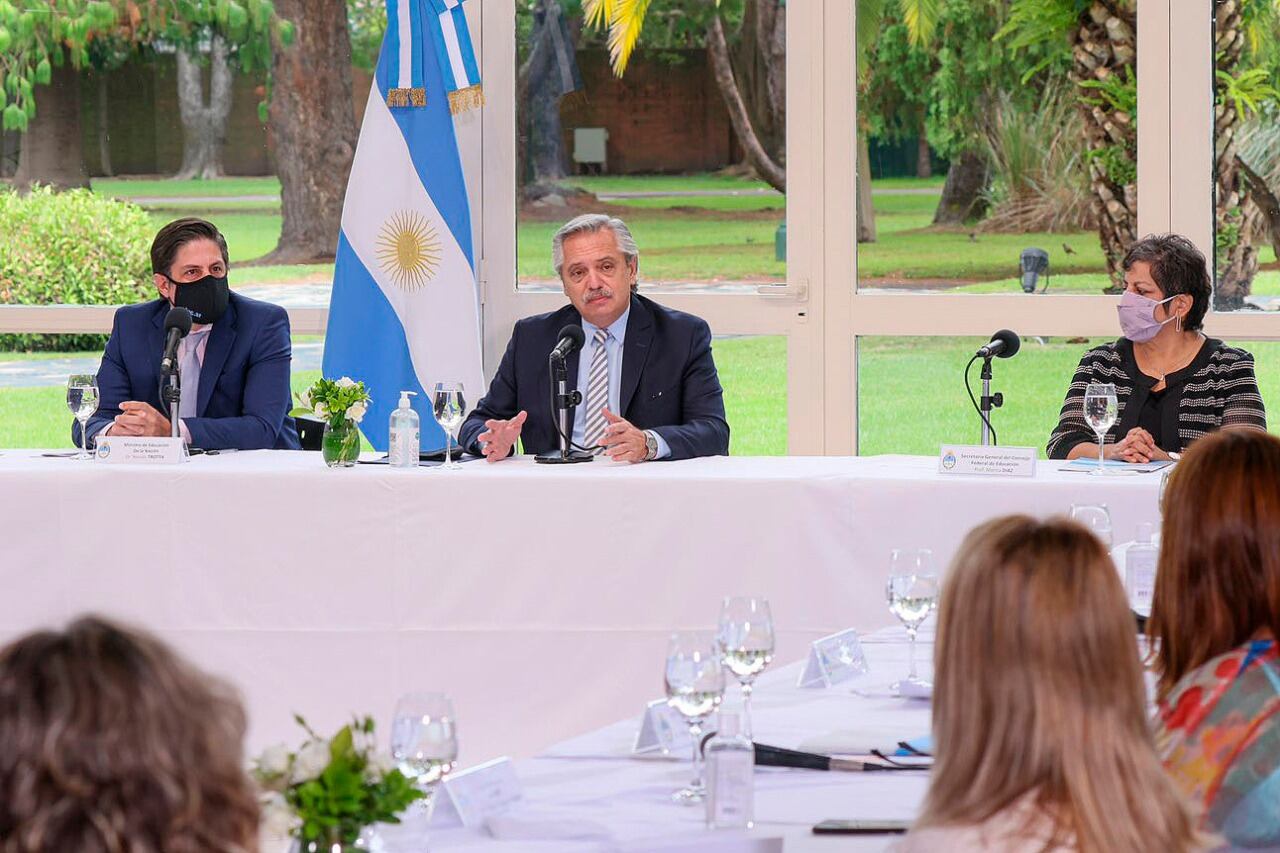 Tras la reunión del Consejo Federal de Educación en Olivos, con Alberto Fernández