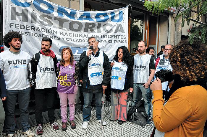 Ayer al mediodía, en la Casa de Jujuy, sobre la Avenida Santa Fe al 900 de la CABA, gremios docentes y federaciones estudiantiles se manifestaron en rechazo a la violación de la autonomía universit