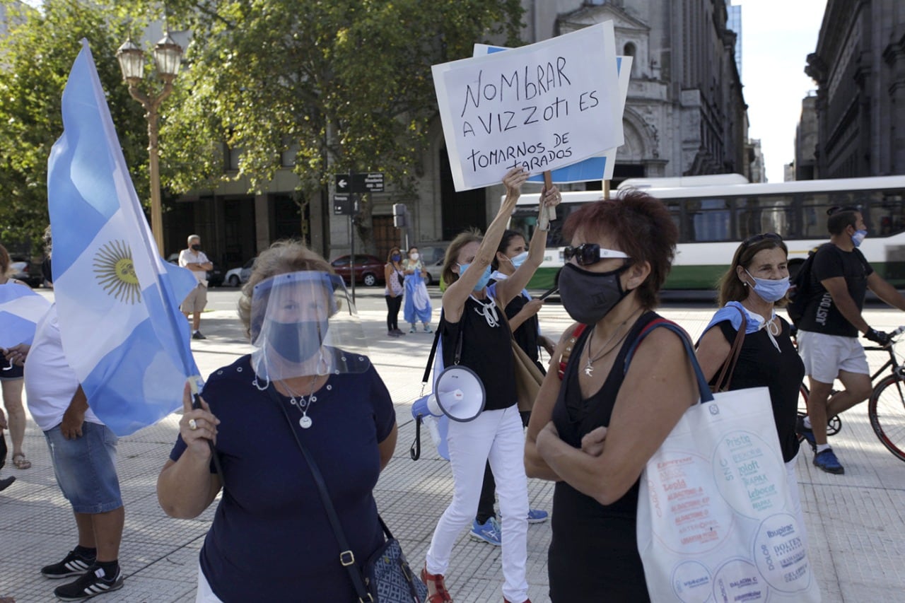 Banderas argentinas y barbijos de diseño: las imágenes de la marcha opositora a Plaza de Mayo
