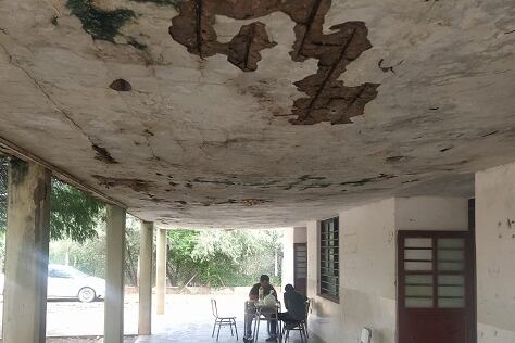 Los techos están agrietados y el cielorraso se está desprendiendo, por lo que temen que ocurra una desgracia con los docentes y alumnos, que deben caminar tratando de sortear los pedazos de techo.