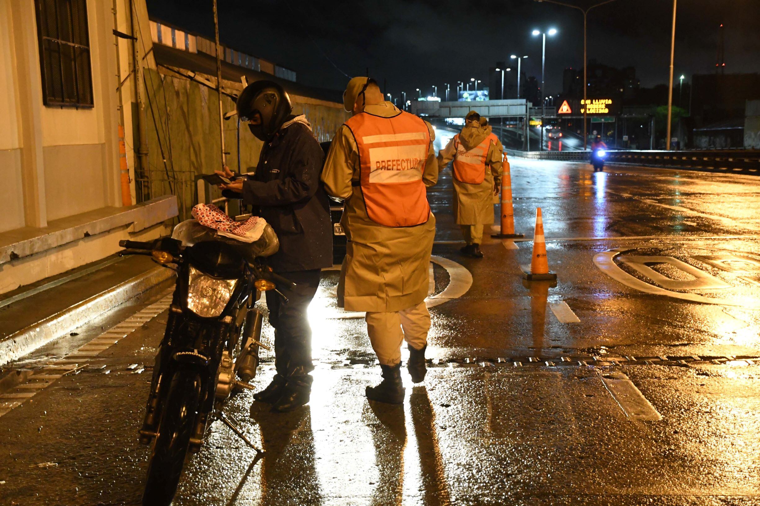 Bajo una persistente lluvia, agentes de diferentes fuerzas de seguridad establecieron a la medianoche controles en el Área Metropolitana de Buenos Aires (AMBA) para asegurar el cumplimiento de las