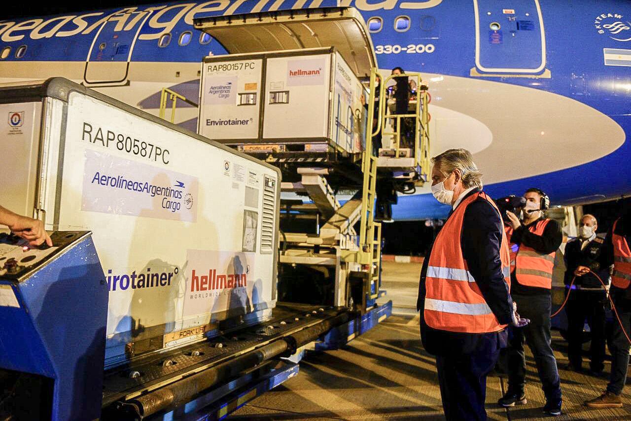 Tal como estaba pautado, el presidente Alberto Fernández recibió este jueves a las 19.10, en el Aeropuerto Internacional de Ezeiza, al vuelo 1051 de Aerolíneas Argentinas proveniente de Beijing que