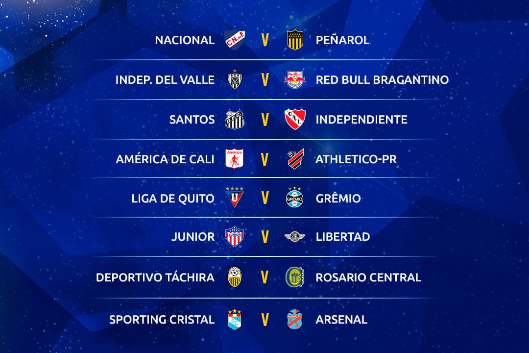 Independiente se medirá con Santos de Brasil, Rosario Central con Deportivo Táchira de Venezuela, y Arsenal de Sarandí con Sporting Cristal de Perú, según quedó establecido est