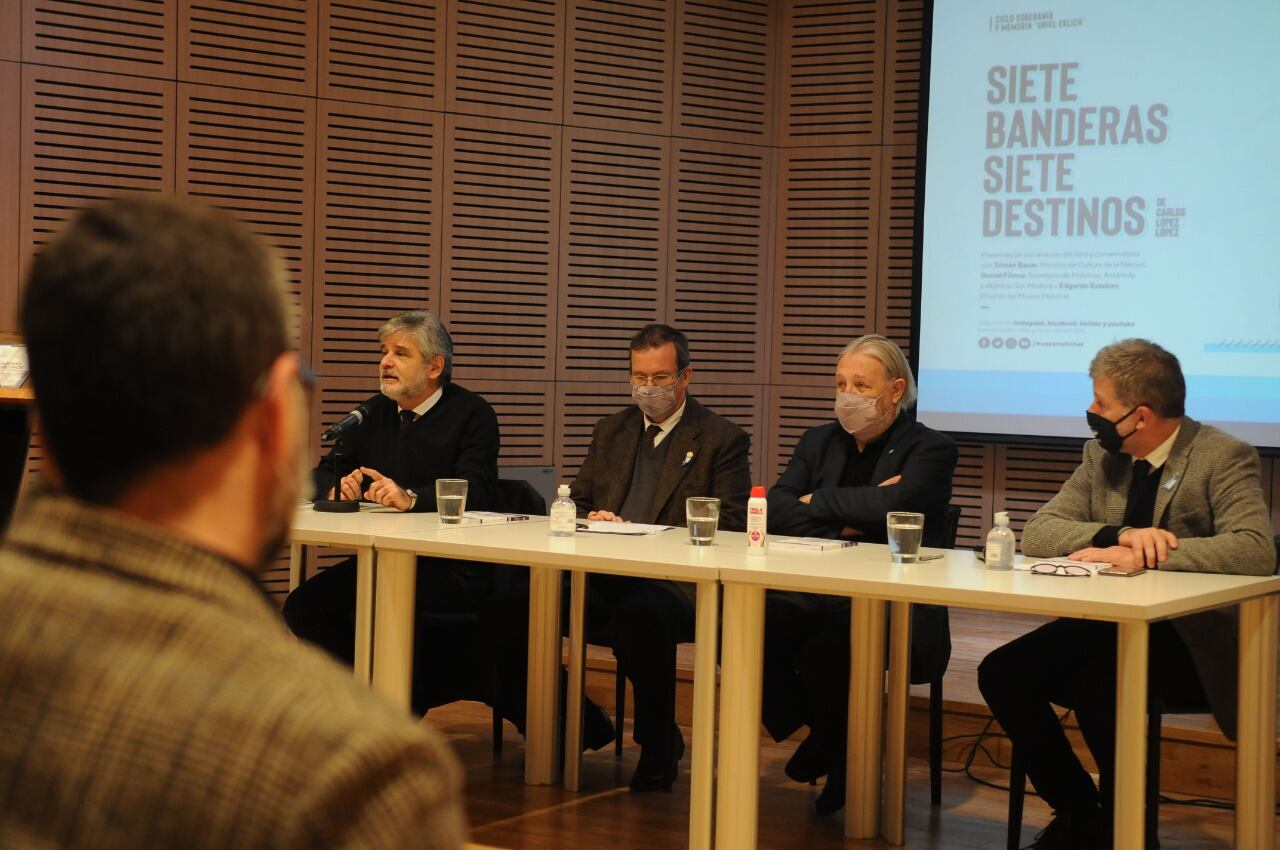 El libro Siete banderas, siete destinos, que cuenta el operativo de un grupo de jóvenes en las islas, en 1966, fue presentado en el Museo Malvinas con la participación de Tristán Bauer, Daniel Filmus, Edgardo Esteban y el autor.