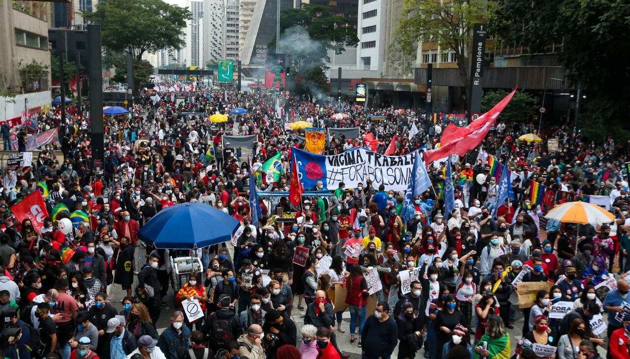 Es el segundo país con más muertes por Covid-19 en el mundo, después de Estados Unidos. Una multitud reclamó la renuncia del presidente por "genocidio sanitario". Ajeno al clima social, él publicó un video homenajeando a policías.