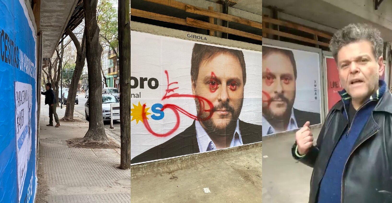 El "cómico" ahora devenido en militante de Juntos por el Cambio, Alfredo Casero,  vandalizó un cartel del Frente de Todos, al dibujarle un pene al precandidato a diputado Leandro Santoro<