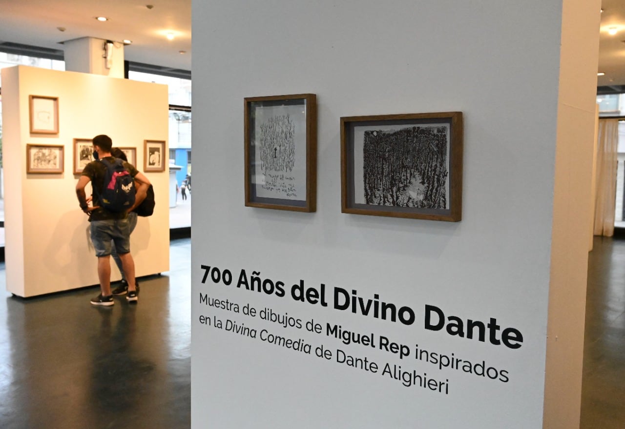 El humorista gráfico Miguel Rep expone en Rosario una selección de casi 40 originales de sus dibujos inspirados en La Divina Comedia para conmemorar los