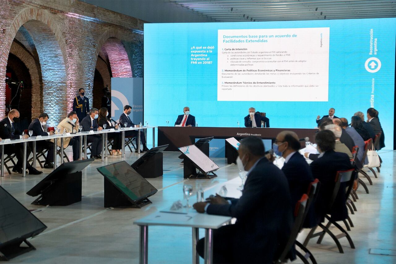 El Presidente pidió unir esfuerzos para negociar con el FMI y aseguró que "la palabra ajuste está desterrada en la discusión". El ministro de Economía informó que existen diferencias con algunos miembros del organismo sobre el "sendero fiscal". Larreta fue el único mandatario que no asistió ni envió a un representante.
