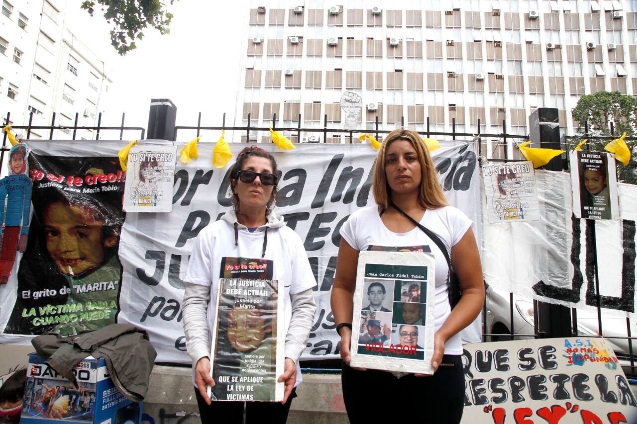 María Tobio, la mujer de 36 años que hace un año denunció que su padre, tío y abuelo abusaron de ella entre los 3 y 11 años, volvió a manifestarse hoy ante los tribunales de Mar del Plata pa