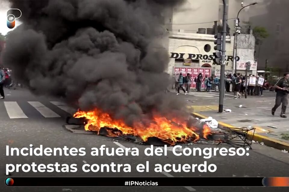 Un grupo de manifestantes protagonizó a menos de una hora del comienzo del debate sobre el FMI en Diputados serios disturbios frente al Congreso de la Nación, donde arrojaron piedras y quemaron neu