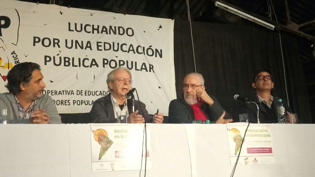 Atilio Borón y Frei Betto recorrieron la historia de la región y reconocieron los errores y los aciertos de los gobiernos progresistas de las últimas décadas. "La idea del 'fin del ciclo progresista' está apoyada en tres países, Argentina, Brasil y México, que se caen a pedazos", coincidieron, y advirtieron acerca de la necesidad de recuperar la "conciencia histórica".