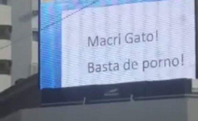 Una pantalla publicitaria ubicada en Cabildo y Mendoza, en el barrio de Belgrano, fue hackeada e intervenida con la leyenda "Macri Gato, viva Perón". También escribieron “¡Basta de porno!” y pasaron una película XXX, luego de que el mandatario les reprochara a los jubilados usar las notebooks entregadas por el gobierno para ver pornografía.