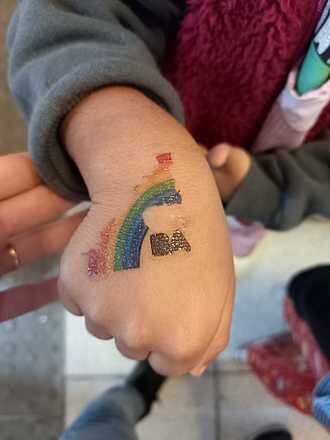 Estudiantes con el emblema del Gobierno de la Ciudad tatuado en una mano, por obra del Ministerio de Educación.