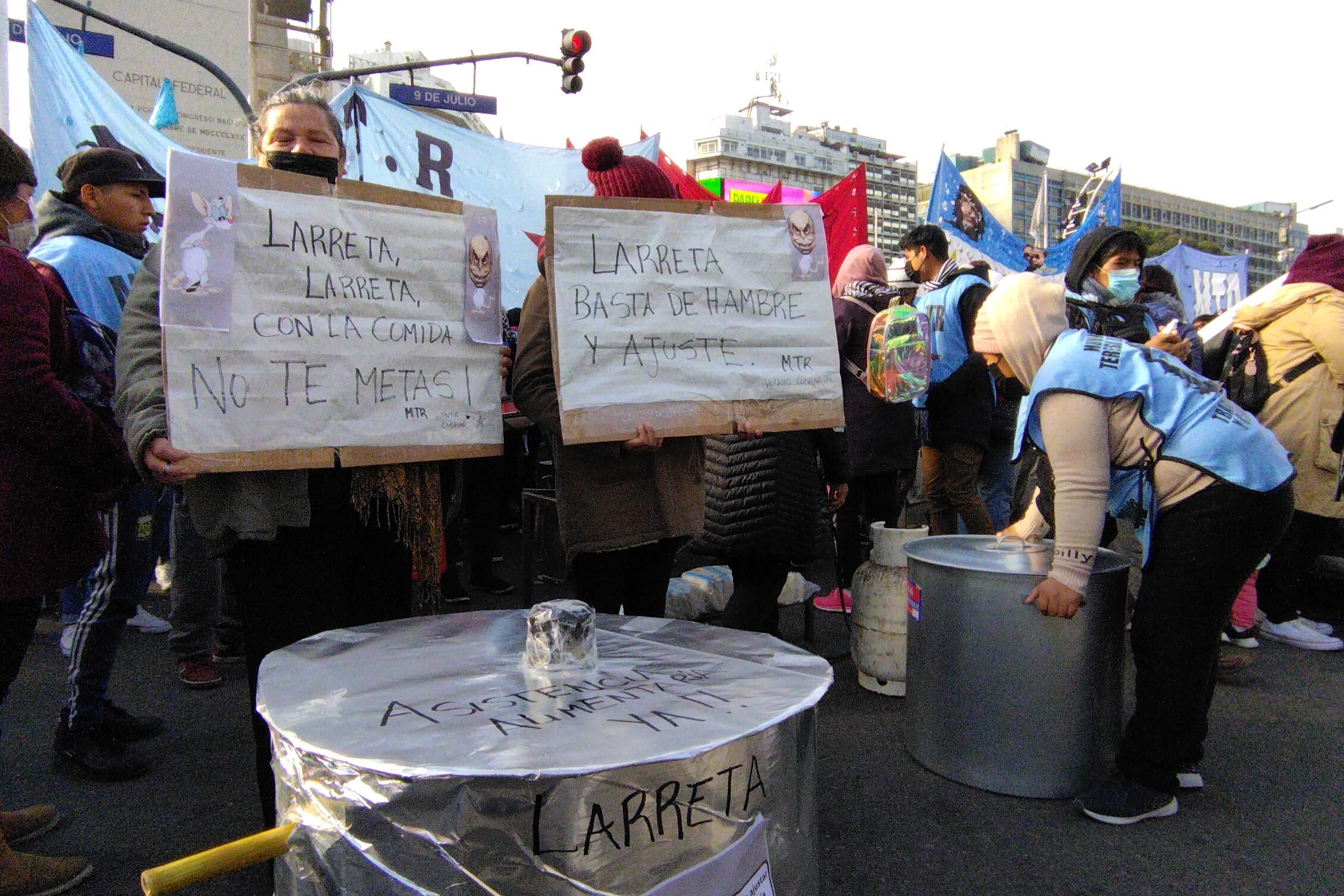 El Obelisco porteño volvió a ser desde esta mañana el epicentro de las protestas contra el gobierno de la ciudad de Buenos Aires, por su desatención a los comedores comunitarios de los barri