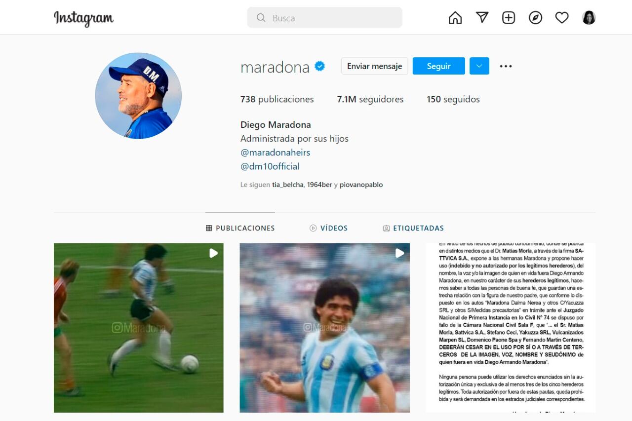 Hackearon la cuenta de Instagram de Diego Maradona