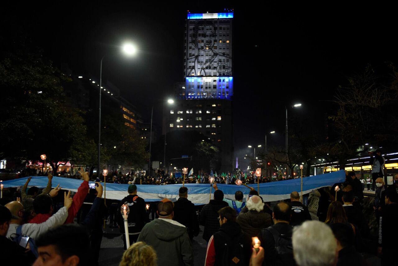 Con una avenida 9 de julio iluminada por la luz de una multitud de velas y antorchas caseras, la CTA y los principales gremios que se nuclean detrás del moyanismo homenajearon el 70 aniversario del