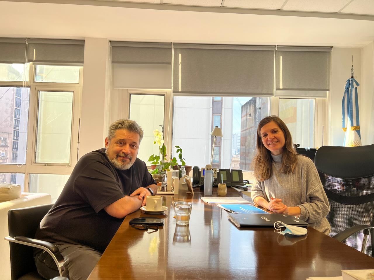 La directora ejecutiva de Anses, Fernanda Raverta, y Víctor Santa María, secretario general del Suterh, acordaron la adhesión al programa "Anses va a tu trabajo" para los la trabajadores de edifici