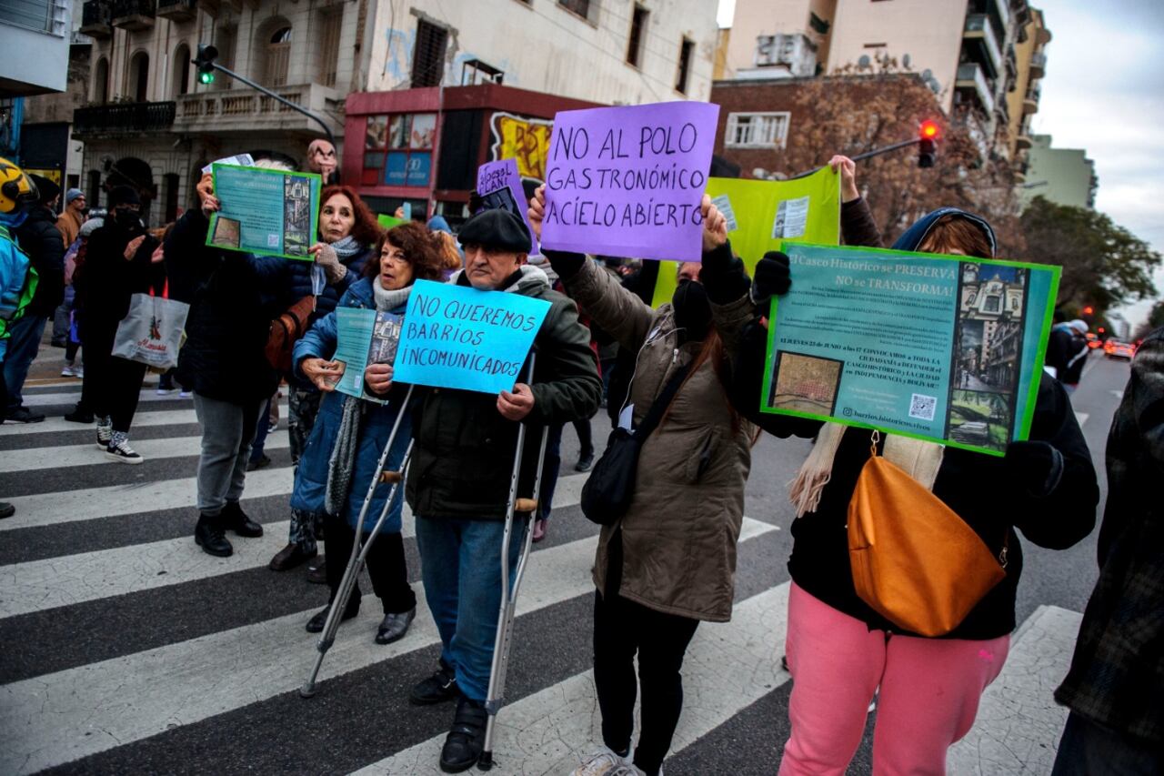 Vecinos de los barrios porteños de Montserrat y San Telmo se movilizaron esta tarde en contra de la iniciativa del Gobierno de la Ciudad de Buenos Aires de modificar el Casco Histórico porteño e in