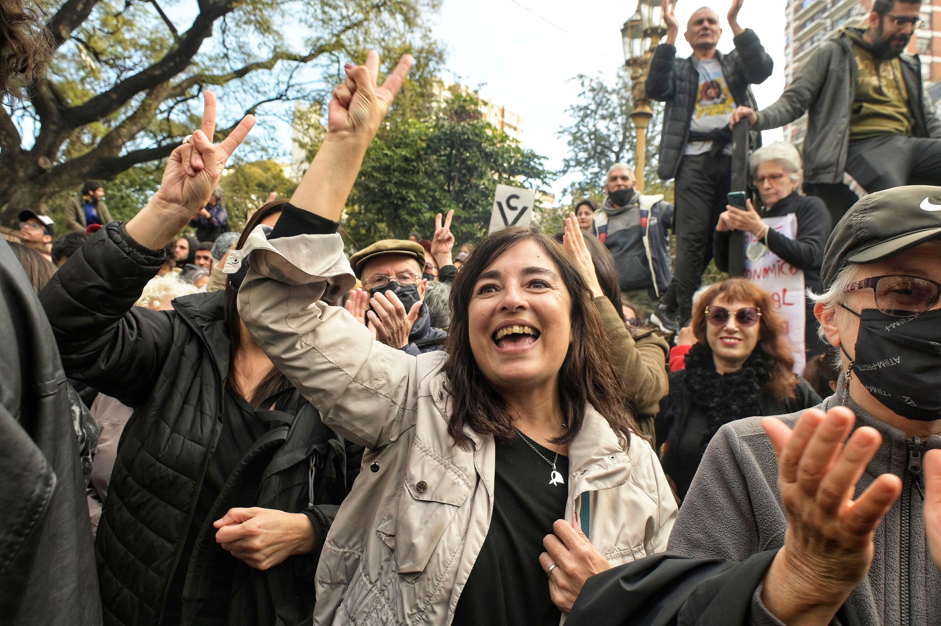 Una multitud se movilizó a Juncal y Uruguay y a distintos puntos para demostrar su apoyo a la vicepresidenta después de que su casa apareciera vallada por el Gobierno de la Ciudad.