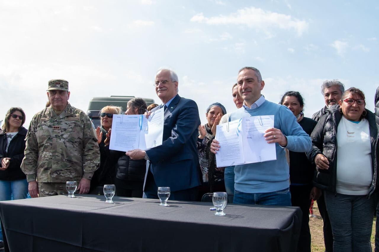 El ministro de Defensa, Jorge Taiana, y el ministro de Desarrollo de la Comunidad de la provincia de Buenos Aires, Andrés Larroque, firmaron un convenio para avanzar con el proceso de obras y tareas de urbanización en el predio del ex Club Planeadores.