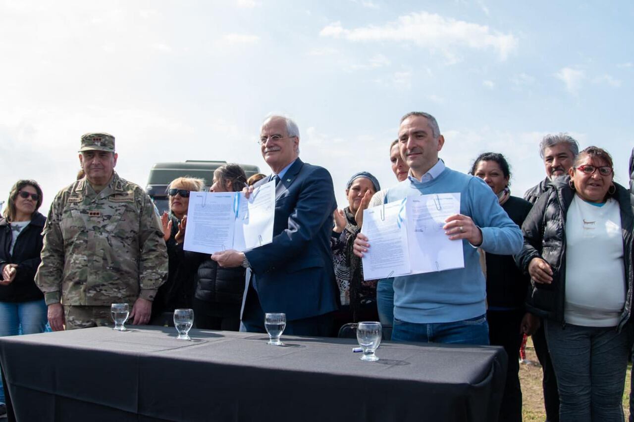 El ministro de Defensa, Jorge Taiana, y el ministro de Desarrollo de la Comunidad de la provincia de Buenos Aires, Andrés Larroque, firmaron un convenio para avanzar con el proceso de obras y tareas de urbanización en el predio del ex Club Planeadores.