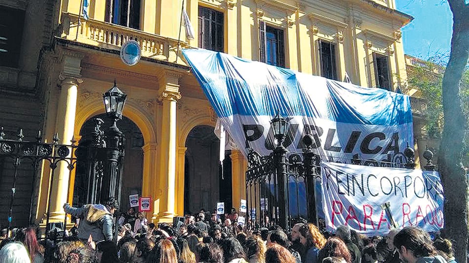 “¡Viva la educación pública! ¡Viva el Mariano Acosta! ¡Viva Raquel Papalardo!”, sonó a través de un altoparlante la voz de Eduardo López, secretario general de UTE.