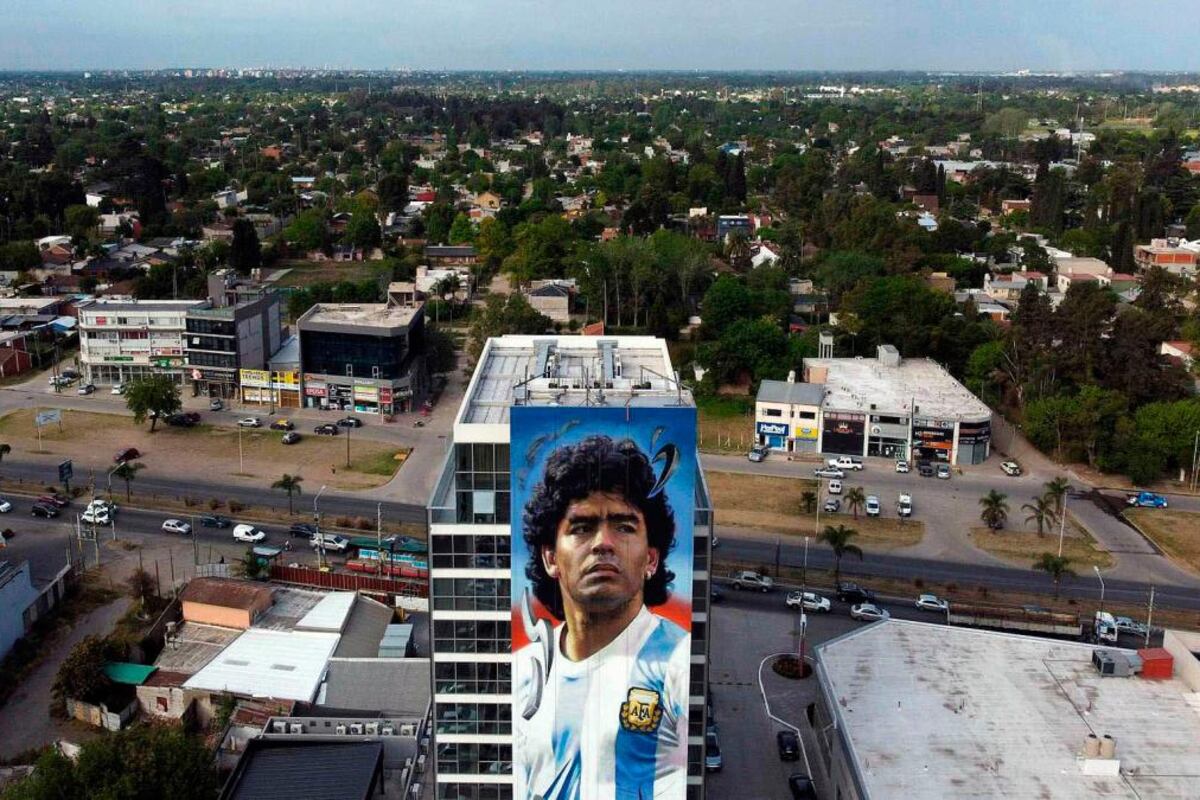 La obra, que será presentada el 30 de octubre, día en que el Diez cumpliría 62 años, fue realizada por el artista Maximiliano Bagnasco y pensada para que el ídolo argentino "reciba" a los aviones que llegan al país.