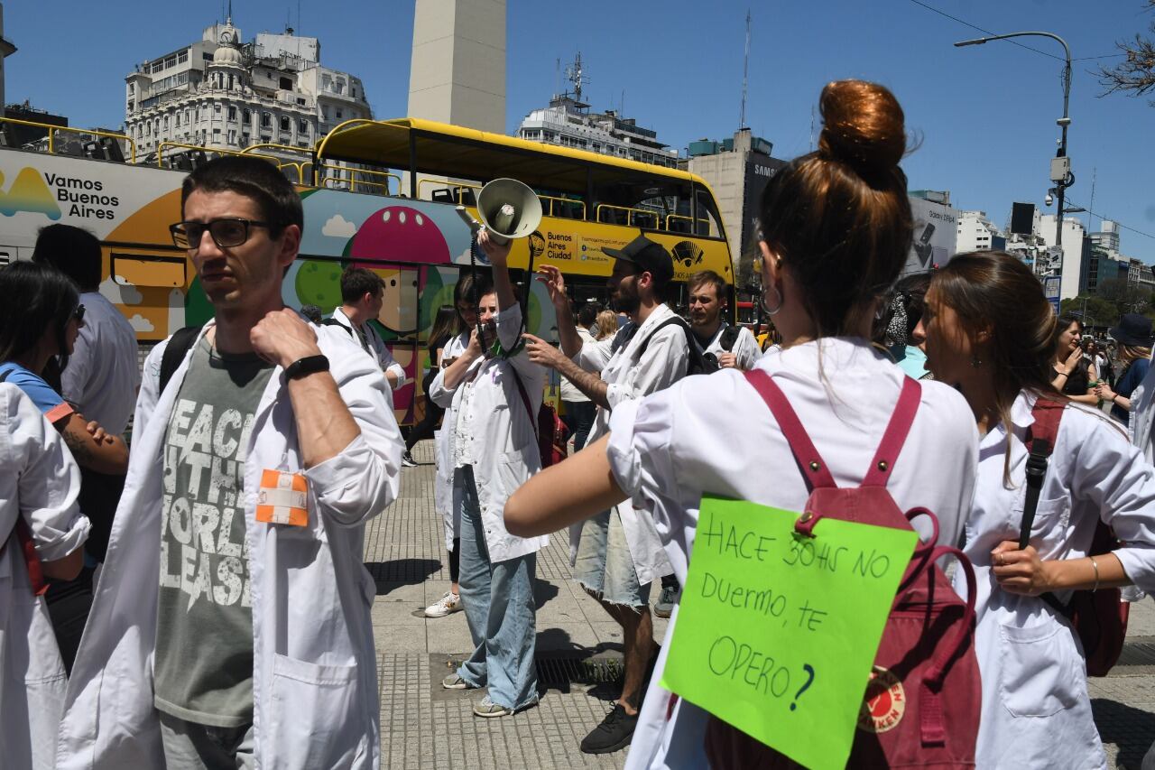 La Asamblea de Residentes y Concurrentes de la Ciudad de Buenos Aires continuó este jueves con el paro por tiempo indeterminado que comenzó el miércoles y se movilizó en el centro por
