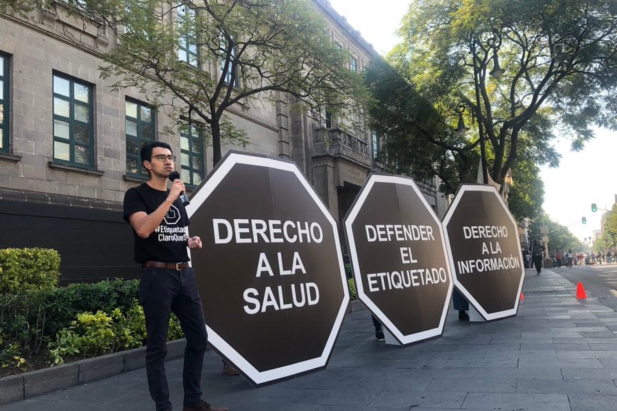 Organizaciones mexicanas marcharon hacia la Suprema Corte de Justicia de la Nación (SCJN) de México para defender el nuevo etiquetado frontal de advertencia en los productos procesados alimentic