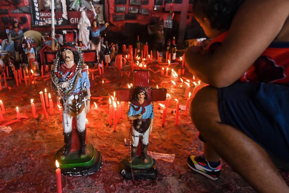Con las tradicionales cintas de color rojo, promesas o agradecimientos por algún favor recibido, una multitud de 300 mil fieles visitó hoy el santuario del Gauchito Gil en la localidad correntina d