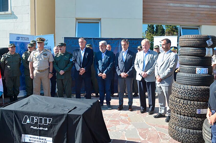Este martes Gendarmería Nacional recibió en un acto conducido por el ministro de Seguridad, Aníbal Fernández, y el director de Aduanas, Guillermo Michel, 163 neumáticos incautados por la
