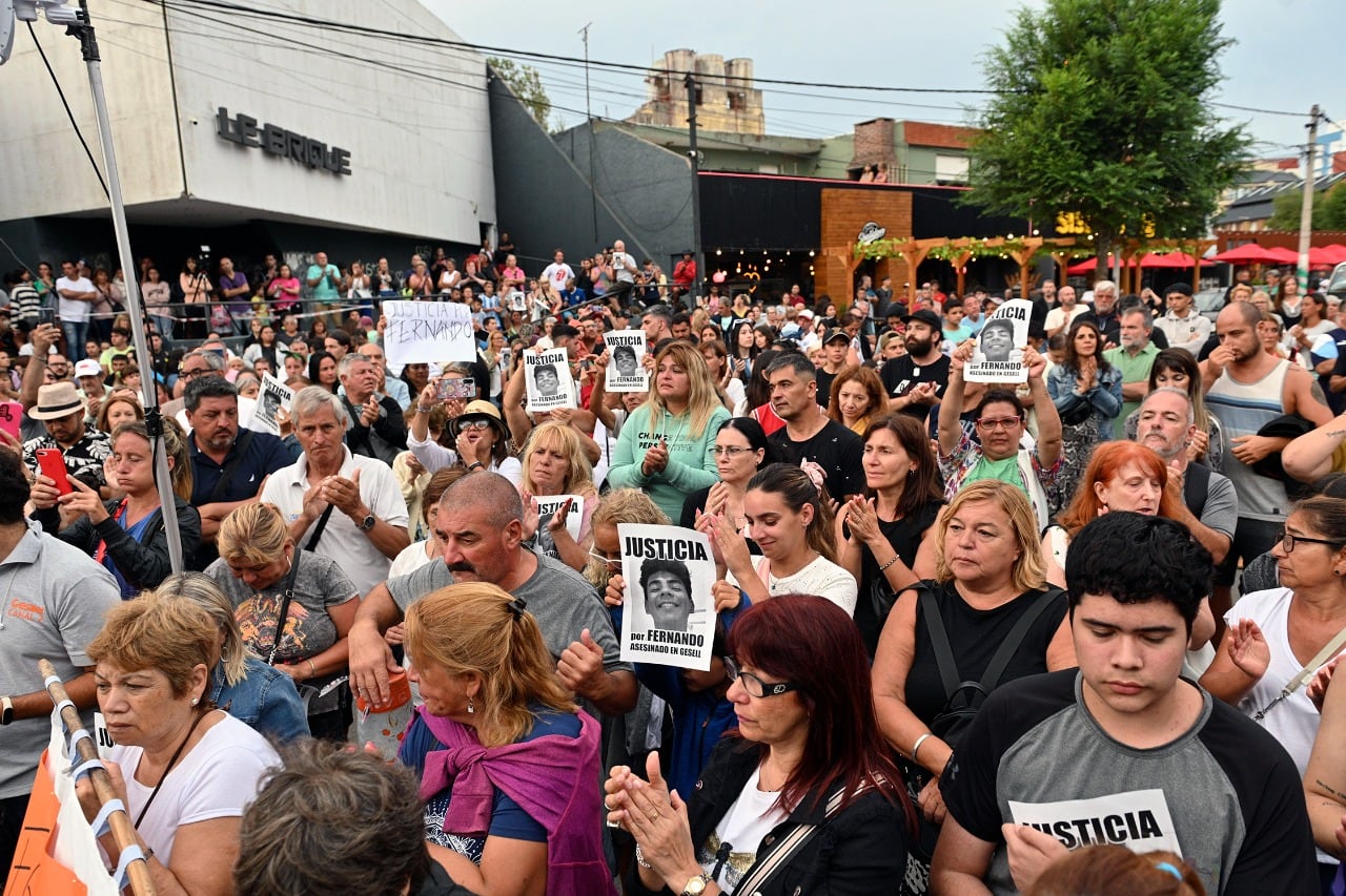 Cientos de personas, muchos de ellos turistas, se reunieron frente al boliche Le Brique, en Villa Gesell, donde hace tres años fue asesinado Fernando Báez Sosa, para homenajear al joven y asistir a