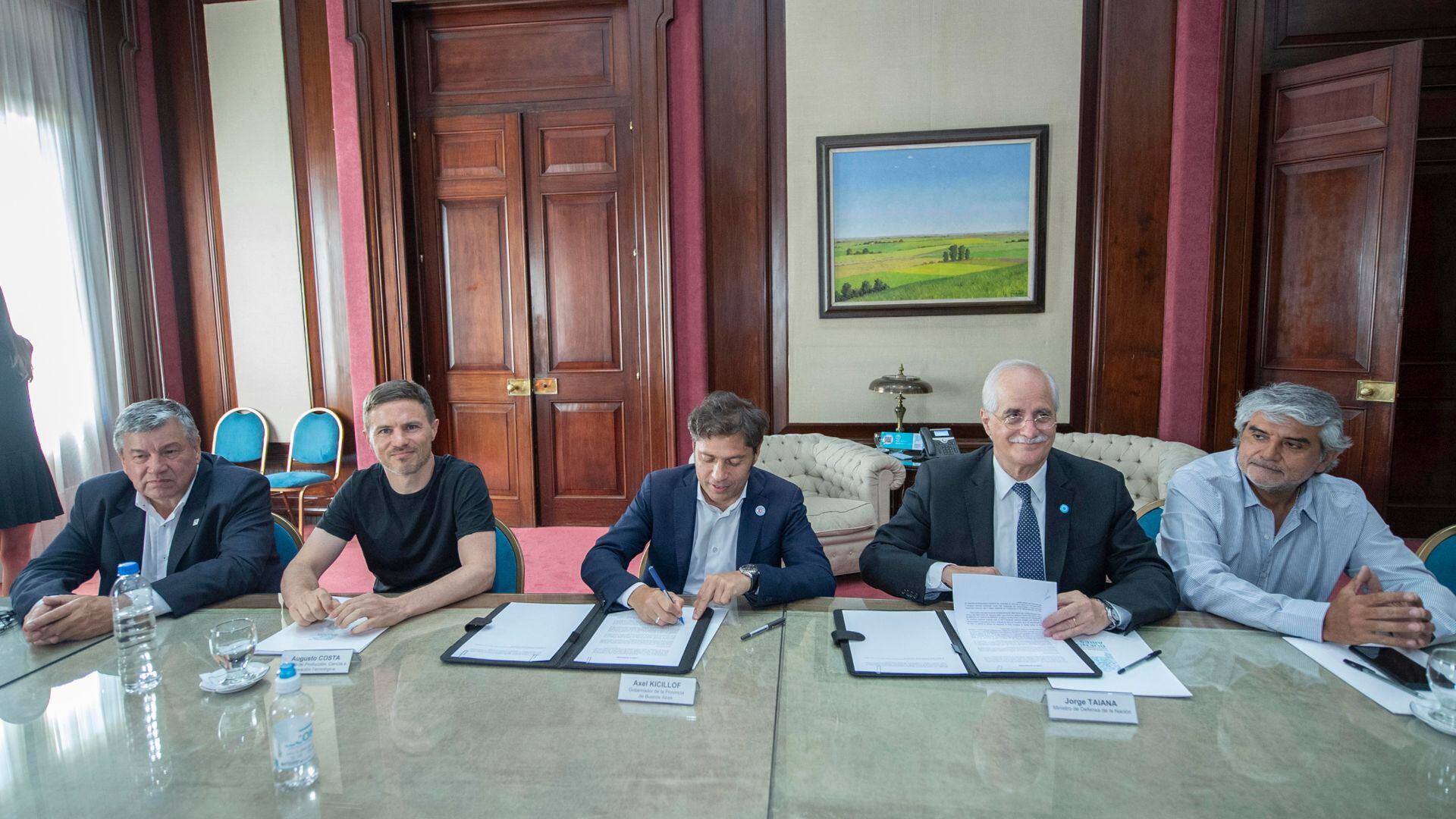 El gobernador Axel Kicillof y el ministro de Defensa, Jorge Taiana, rubricaron un convenio para construir un dique flotante para la Armada Nacional.