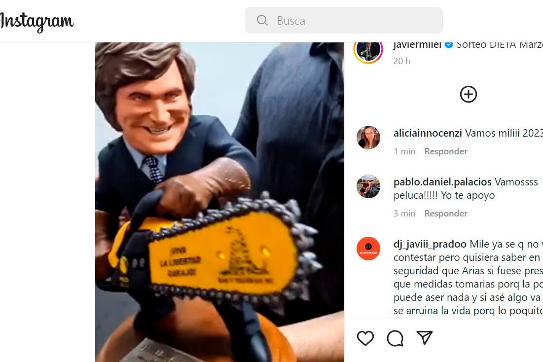 Milei sigue con sus métodos de campaña: sorteo del sueldo y discurso "anticasta". A esa figurita repetida se le sumó un muñeco para hacer gala de su "plan motosierra", un eufemismo para desarrollar su proyecto de ajuste a los sectores más vulnerables.