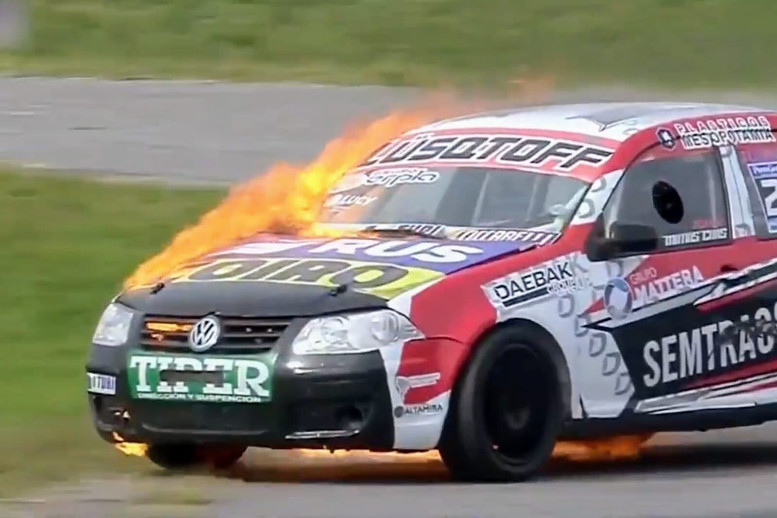 El piloto Alejandro Martínez, hermano de Emiliano -arquero de la Selección- sufrió el incendio de su automóvil cuando competía en una carrera de la Copa Bora en el autódromo Rober