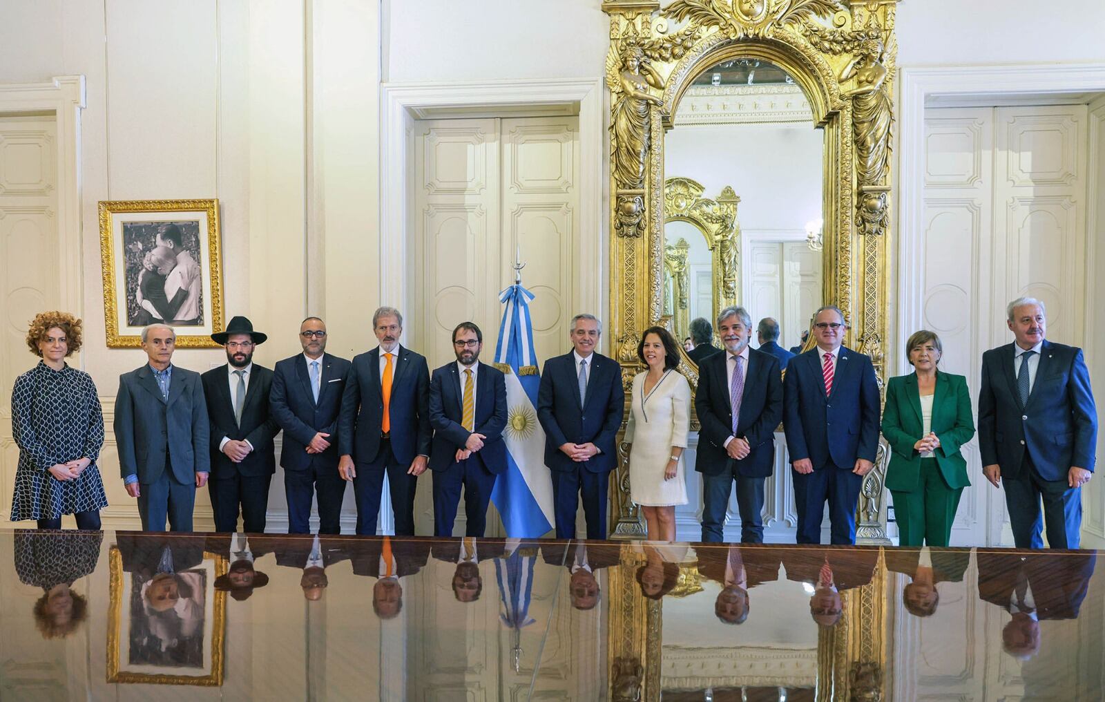 El presidente Alberto Fernández encabezó en la Casa Rosada el acto con el que el Gobierno nacional anunció que se canceló la condecoración Orden de Mayo al mérito otorgada en 1979, en plena dict