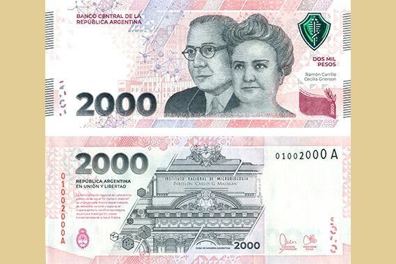 El Banco Central (BCRA) puso ayer en circulación el billete conmemorativo de 2000 pesos de curso legal con la imagen del Instituto Malbrán, de la doctora Cecilia Grierson y el doctor Ramón Carrillo