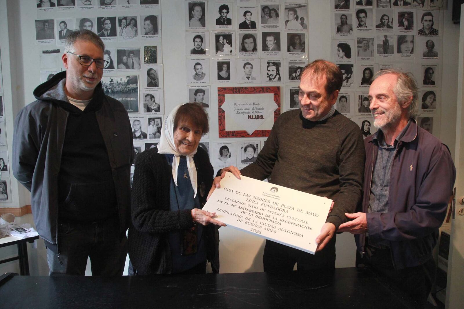 La representante de Madres de Plaza de Mayo Línea Fundadora, Taty Almeida, recibió la placa que conmemora la declaración de la Casa de las Madres como Sitio de Interés Cultural de la Ciudad.