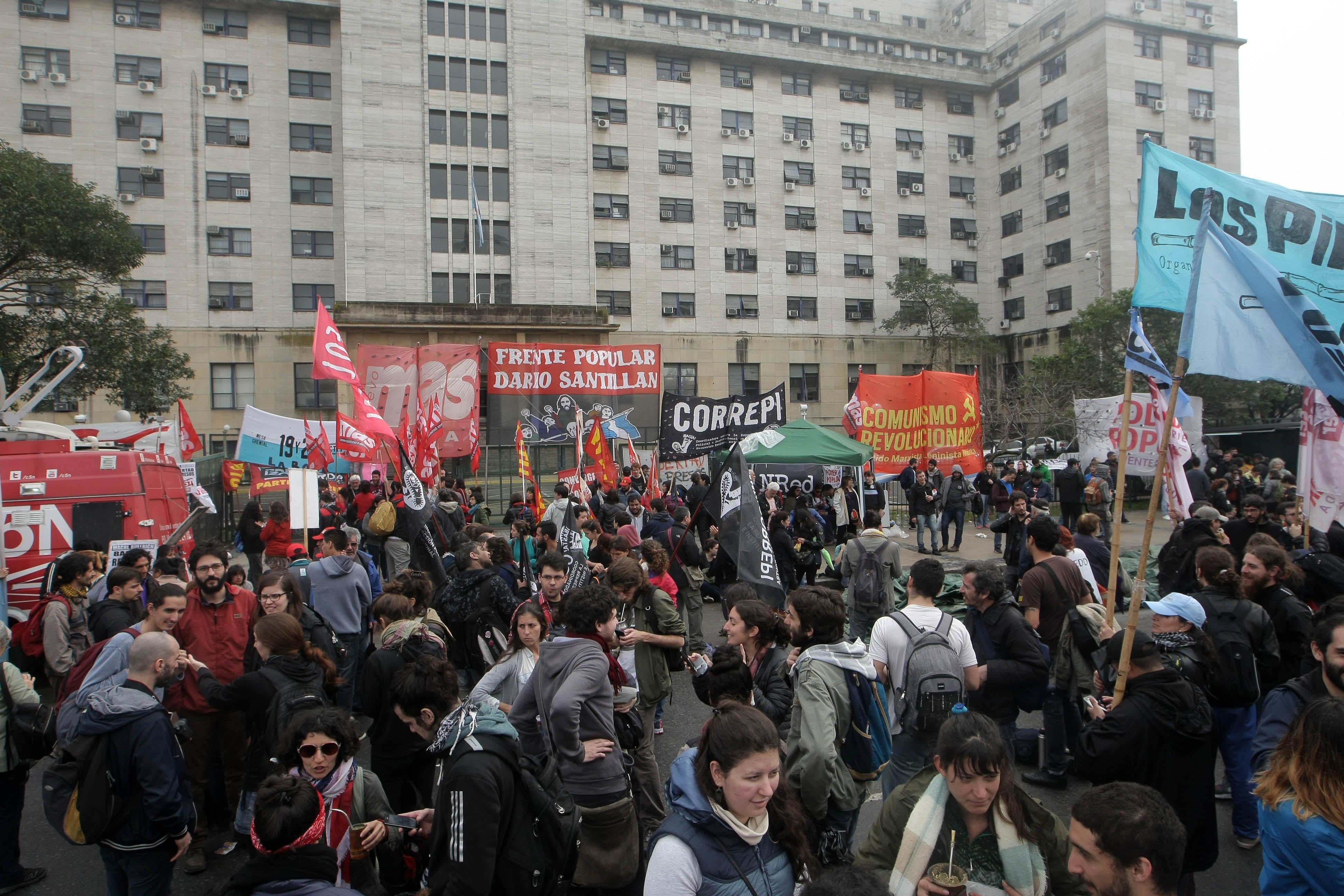 Los 31 detenidos por la brutal represión de Plaza de Mayo debieron esperar durante más de seis horas la llegada del juez De Giorgi para empezar a declarar. Las indagatorias estaban previstas para las 8, pero recién comenzaron a las 14. "Están apostando al cansancio. Es una muestra más de cómo se manipula esta situación para criminalizar la protesta y para escarmentar a quienes reclaman la aparición con vida de Santiago Maldonado", denunciaron los abogados defensores.