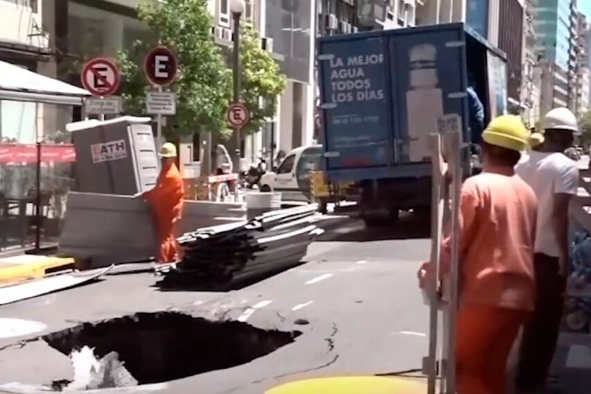 Un camión de soda se hundió en el asfalto y dejó un cráter en plena Avenida Córdoba