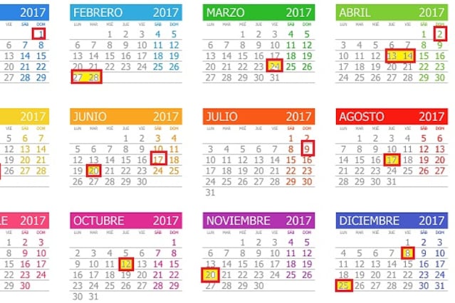 Sin feriados puente en 2017