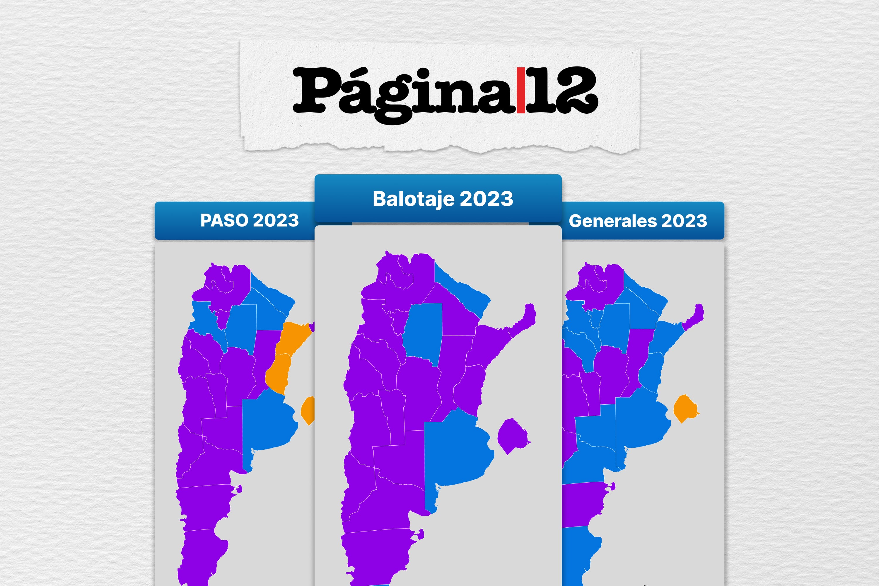 El territorio argentino varió entre el amarillo, el azul y el violeta en los últimos meses, desde las primarias hasta la segunda vuelta. Córdoba y Mendoza, los distritos clave para Milei. Cuáles provincias pasaron por los tres colores.
