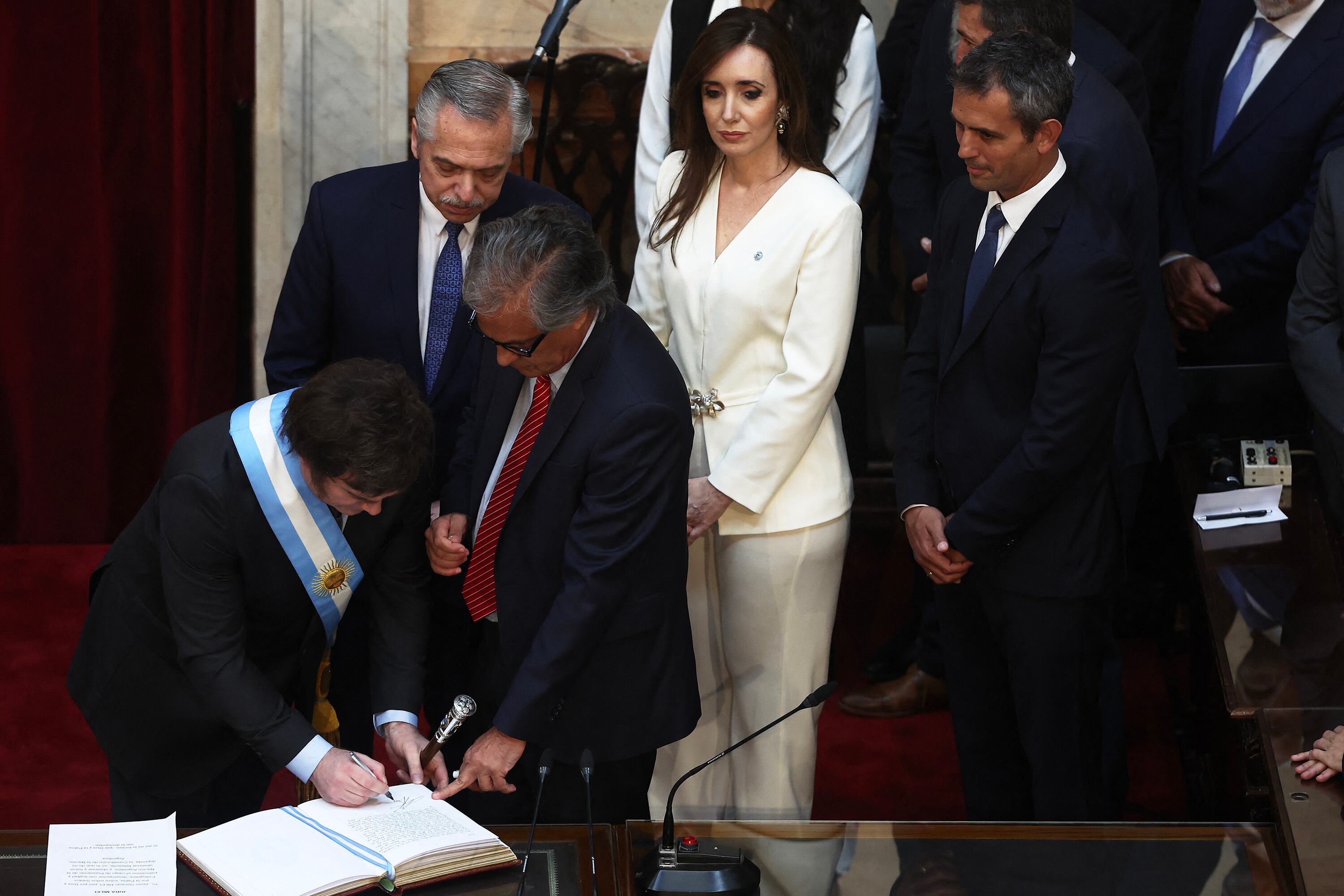 El flamante presidente Javier Milei firmó hoy el libro de honor del Congreso de la Nación con la arenga "Viva la Libertad, carajo", antes de ingresar a la Asamblea Legislativa en la que juró y reci