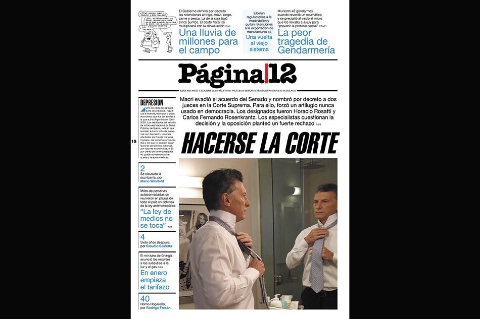 Habían pasado solo cuatro días desde su asunción cuando Mauricio Macri decidió nombrar a dos jueces de la Corte Suprema por decreto. Era un evento inédito en la historia democrática argentina.