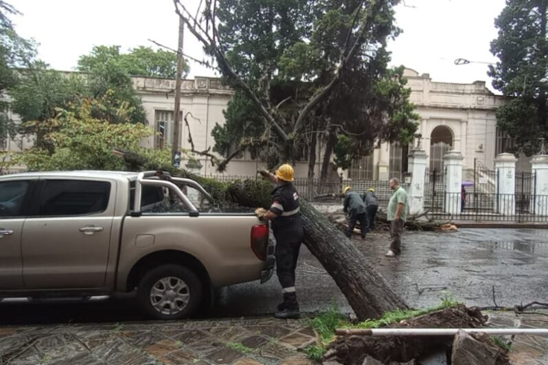 Durante buena parte de la tarde de ayer, las fuertes lluvias cubrieron buena parte del este provincial. Se reportaron familias anegadas, cables y postes dañados, árboles caídos o incluso desgajados, consecuencia de ráfagas que alcanzaron los 80 kilómetros por hora.