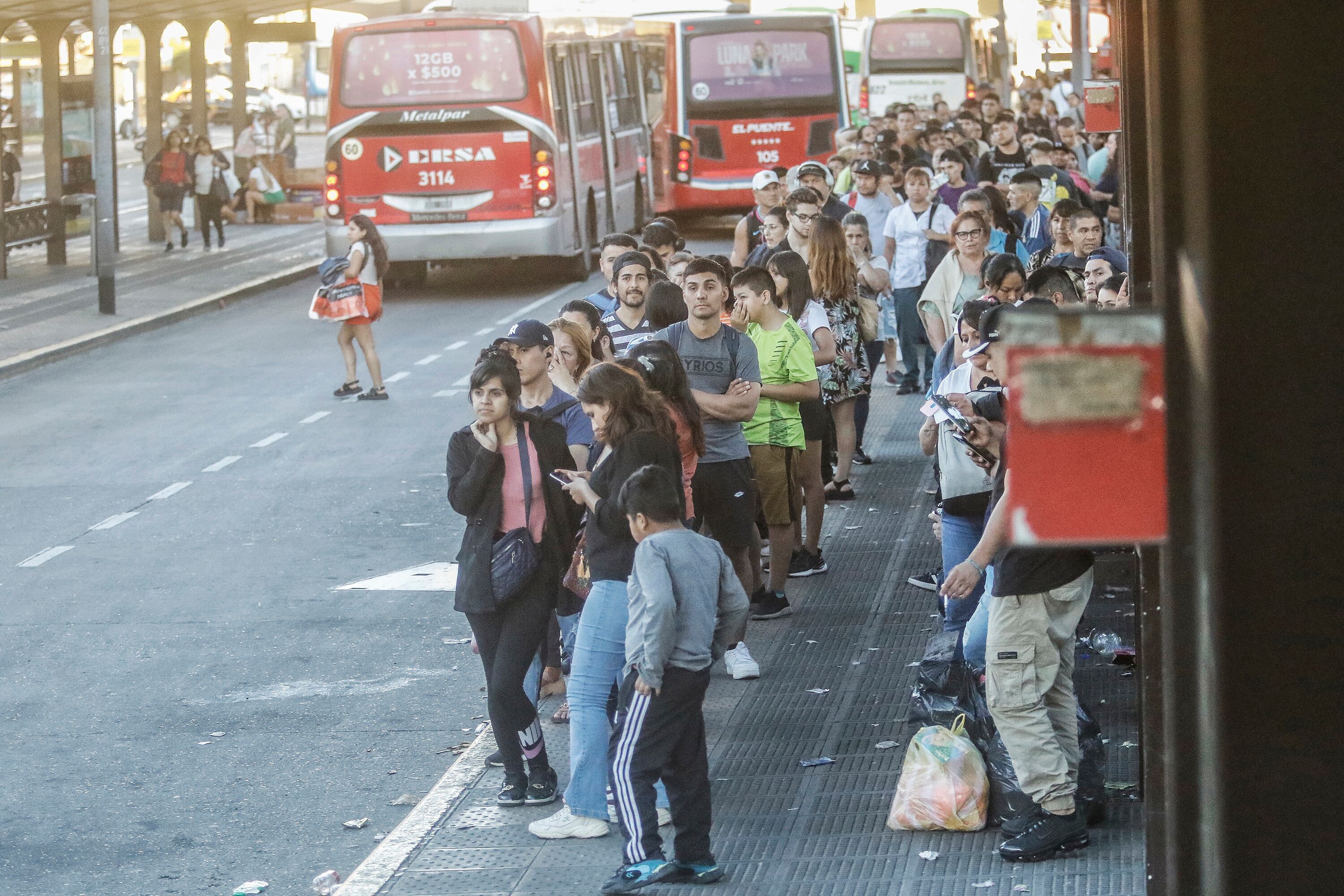 Largas filas y demoras para tomar colectivos en Plaza Miserere