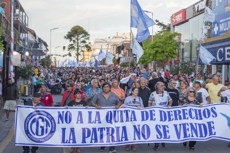 Bajo el lema "La Patria no se vende - No a la quita de derechos" y con la bandera argentina como estandarte la multitud se dirigió desde la Avenida Buenos Aires para concluir en la puerta del Banco Nación (Avenida 3 y 108), donde los trabajadores bancarios, acompañados por el intendente desplegaron toda su carteleria que indicaba "El Nación no se vende".