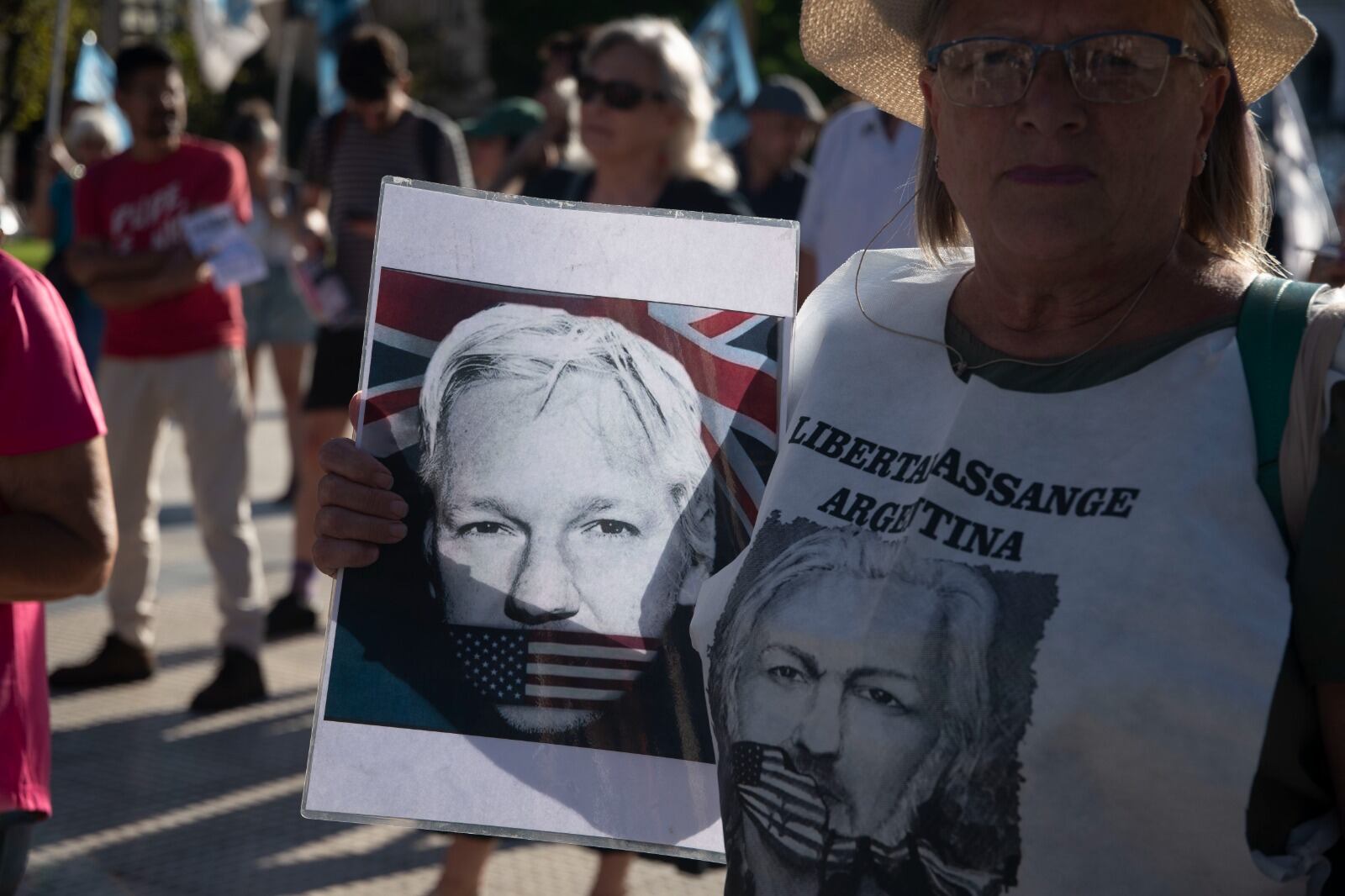 Acto por la liberación de Julian Assange en Plaza de Mayo